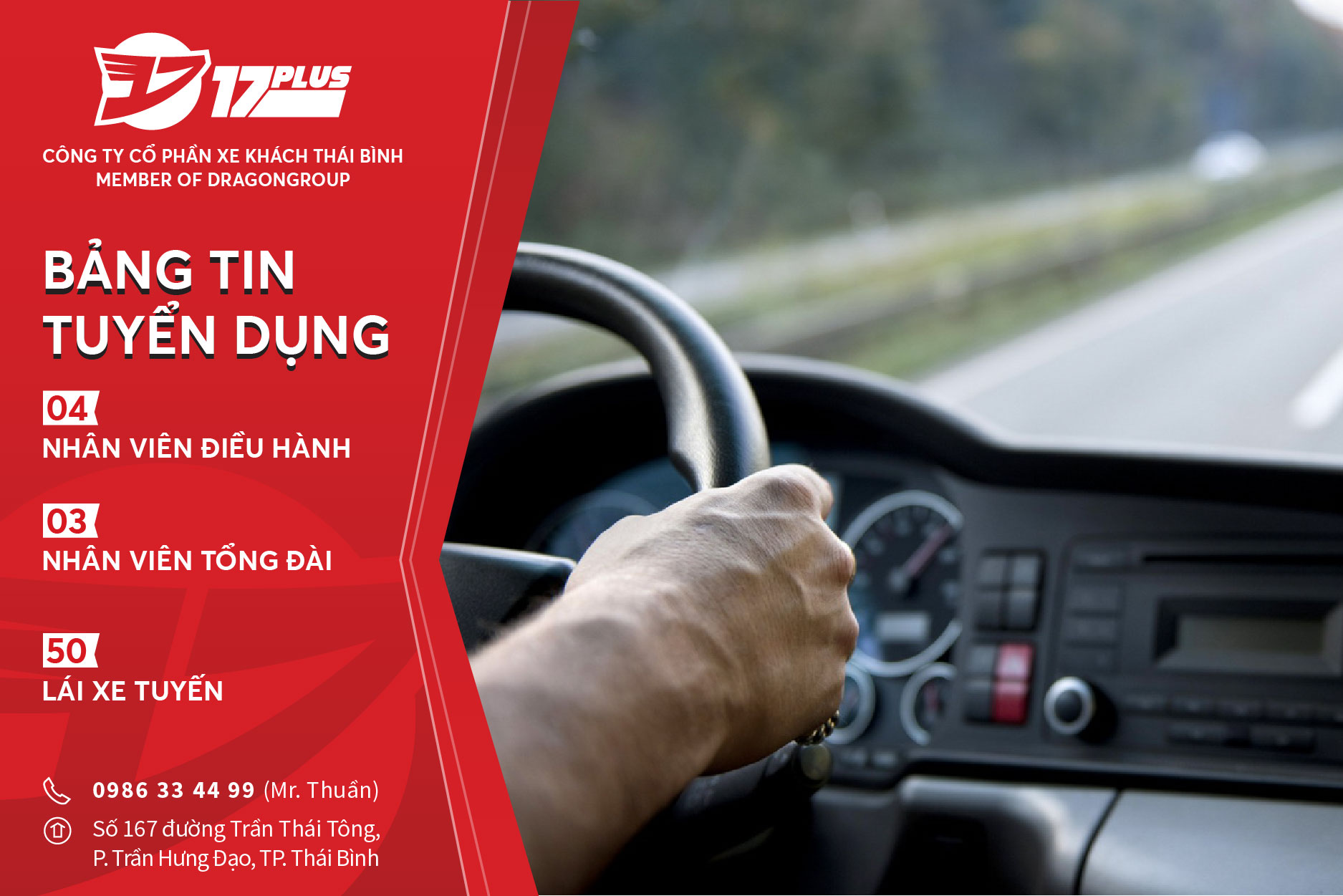 – Yêu cầu: Có bằng lái xe D.