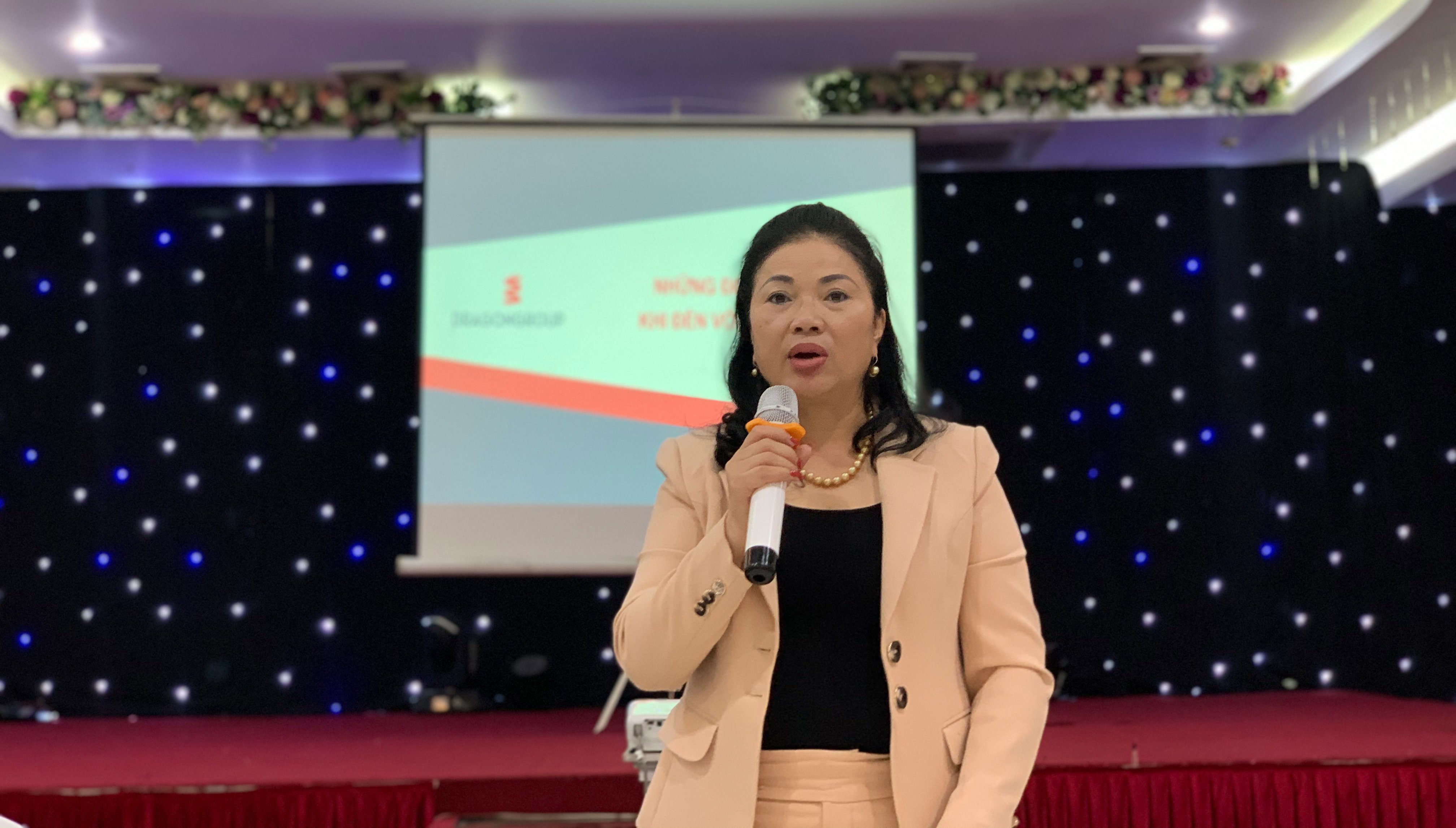 Chủ tịch Hội đồng quản trị Vũ Thị Thà phát biểu về tầm quan trọng của công tác đào tạo nội bộ và ý nghĩa của “Sổ tay người Thăng Long”