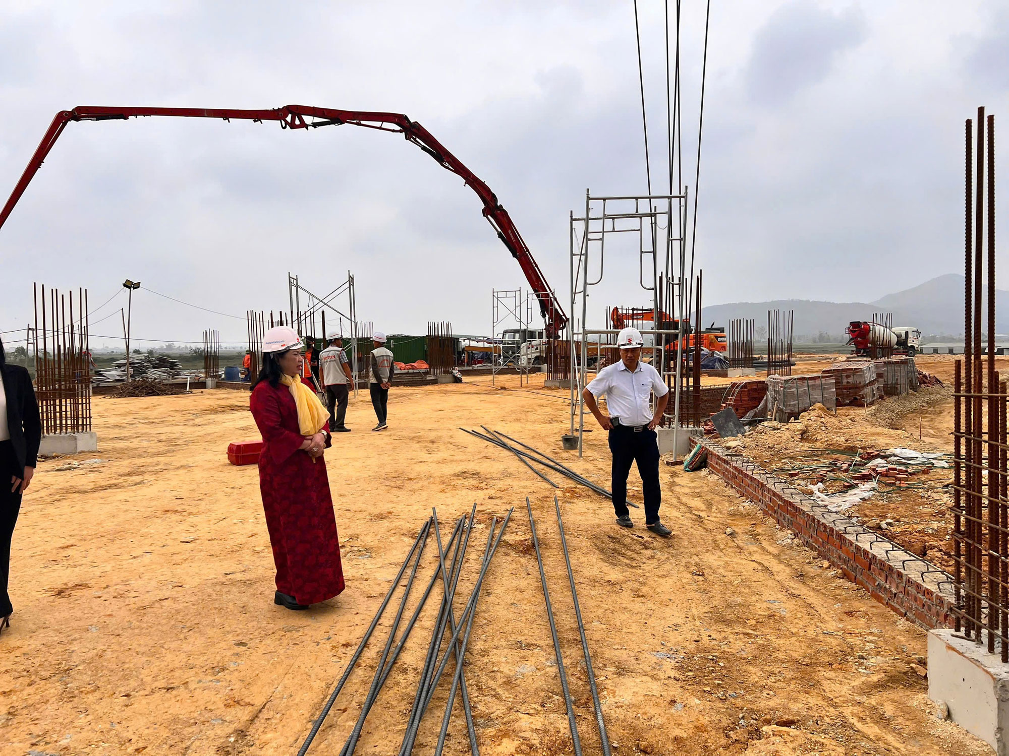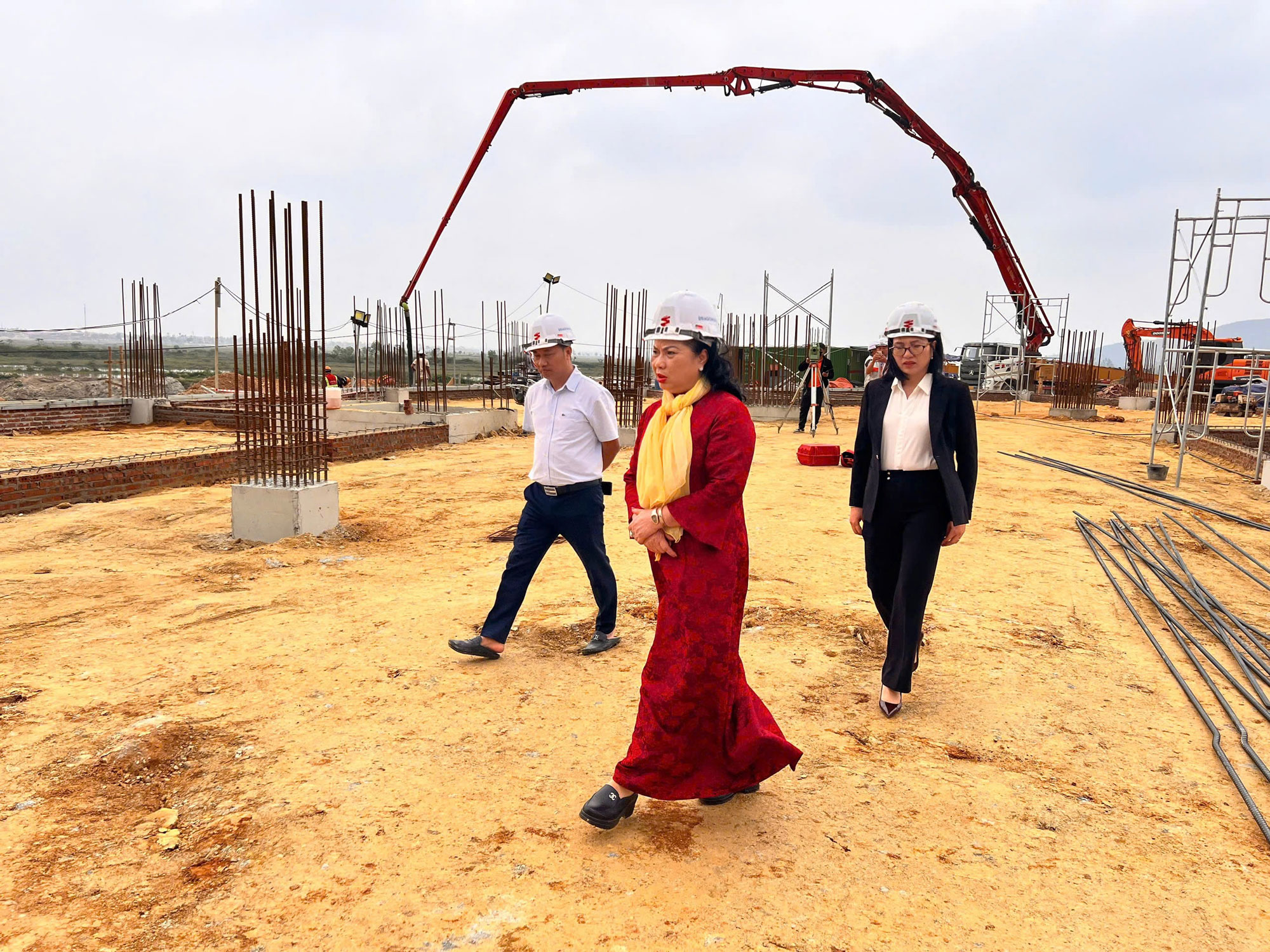 In the fast-paced construction atmosphere of the year-end period, the DragonIZ Ha Tinh project site is gradually completing key components in alignment with the established plan. Recently, DragonGroup Chairwoman Vũ Thị Thà visited the site to receive progress reports, inspect on-site conditions, and encourage the teams working tirelessly day and night on the project.